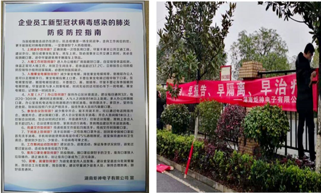 為應(yīng)對新型冠狀病毒感染的肺炎疫情,落實以企業(yè)防控為主的綜合防控措施,湖南炬神電子有限公司提前謀劃、周密部署,積極做好復(fù)工復(fù)產(chǎn)前各項準備措施,為早日恢復(fù)生產(chǎn),保障社會經(jīng)濟正常穩(wěn)定運行打響了一場全員戰(zhàn)“疫”。